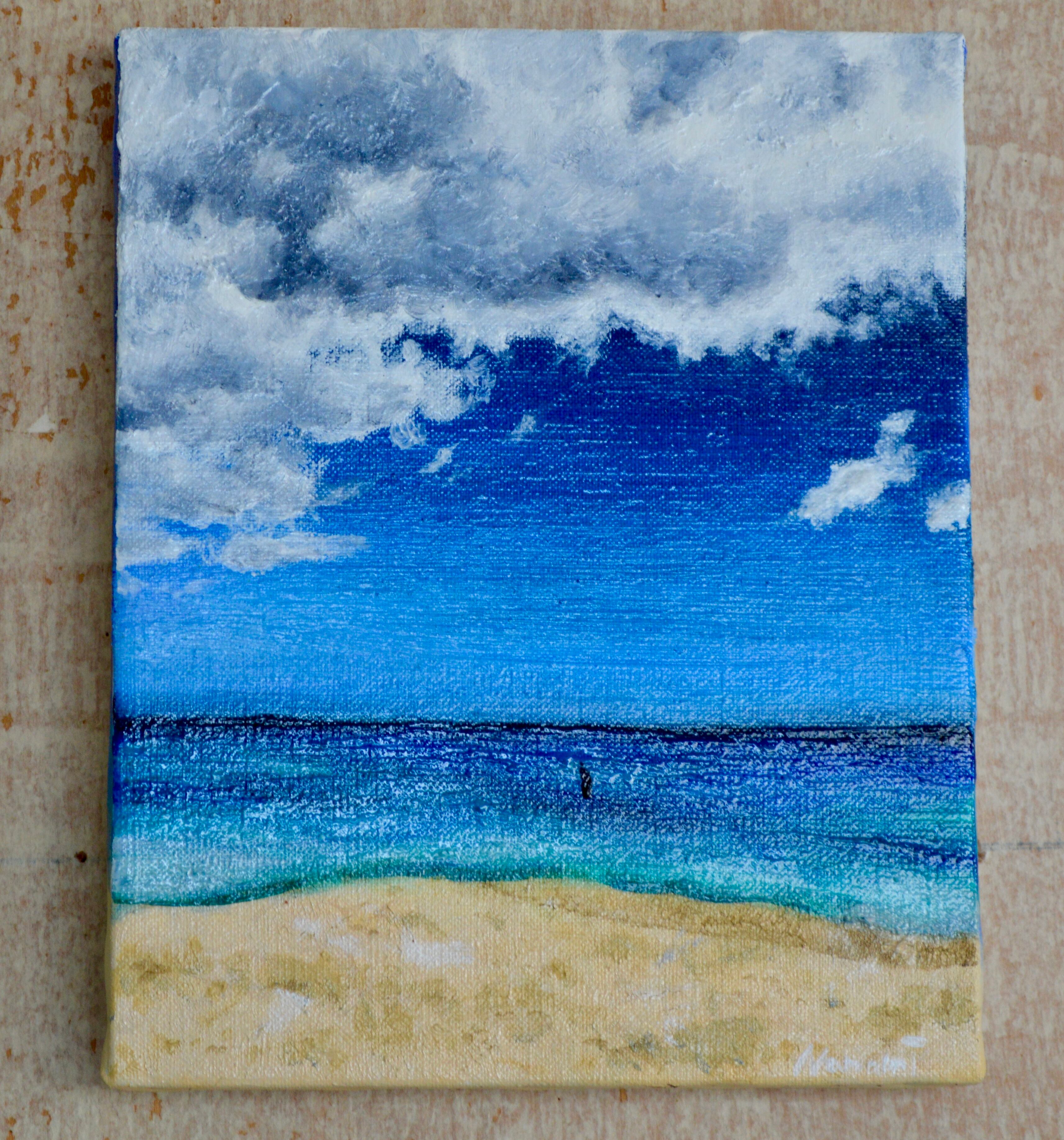 グアム旅行 友達の姿 曖昧な記憶 どんな姿だっけ 忘れないようにキャンバスに 油彩 カンヴァス F3 原画の為、在庫数1です ニス掛け済 送料込
